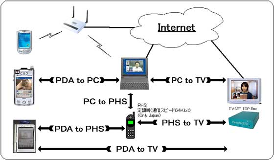 Ps2H-Zソフトをインストールしたザウルスを持って、外国に行ったときでもTV電話できます。