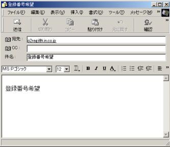 1.登録番号申込みボタンを押すと、メールが開きます。